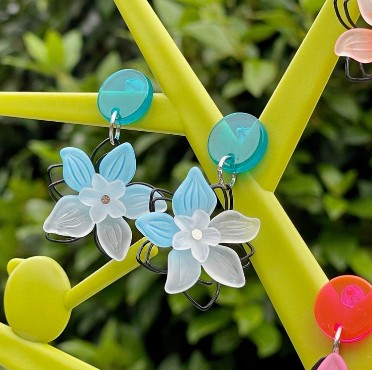 FLORAL NEON WIRE WRAPPED EARRINGS several colours lucite
