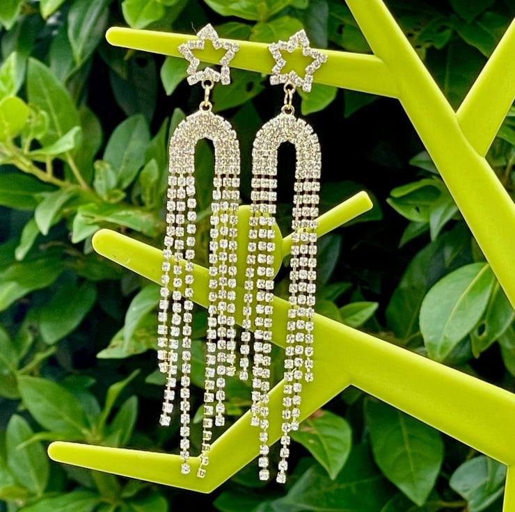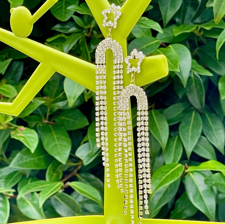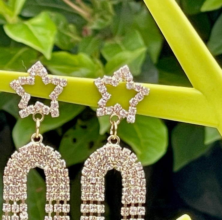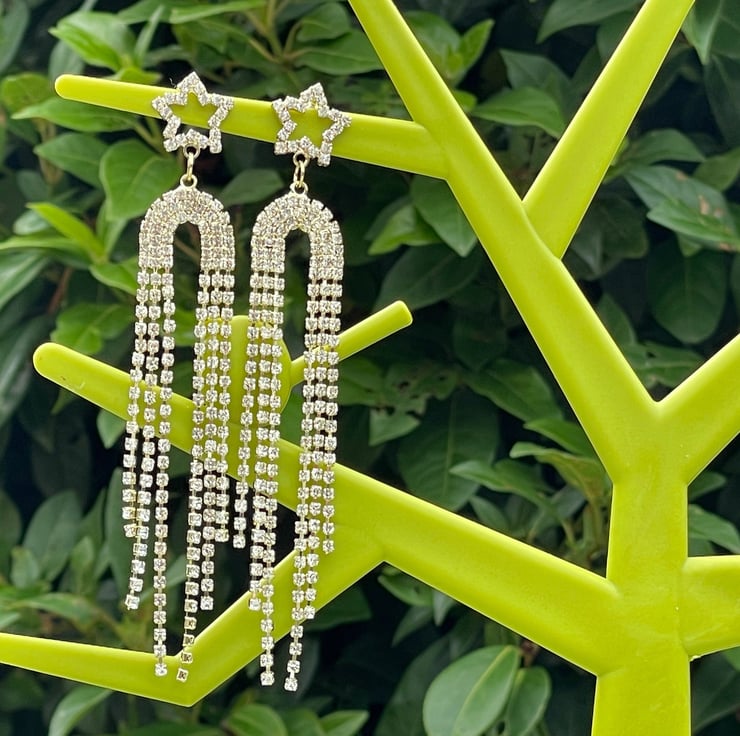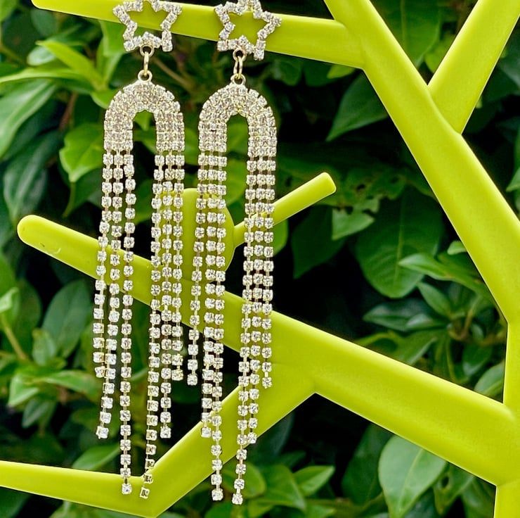 I've used the most beautiful star diamente posts in gold plate and I've paired them with stunning fringes in an arch tennis shape with diamente.