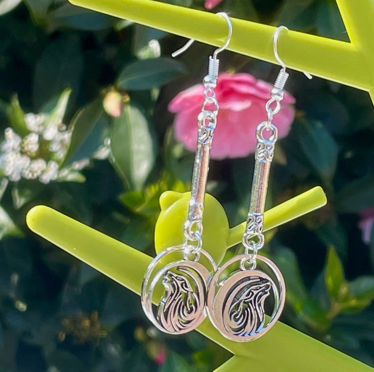 These are so much fun. We adore them here. Little drop bar howling wolf hoop earrings. Gorgeous Aroooooooo!