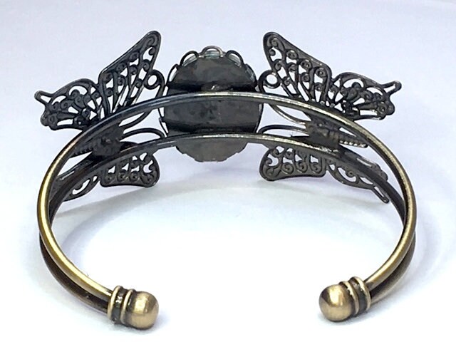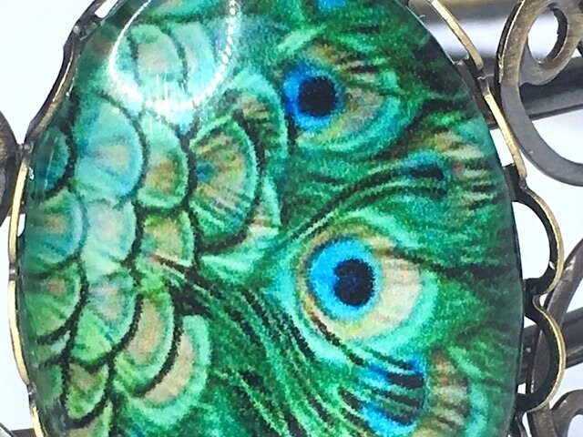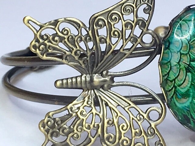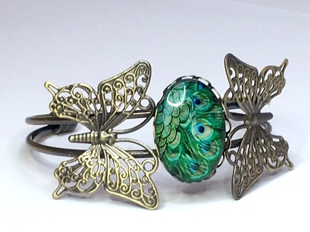 I love this gorgeous butterfly and peacock feather cabochon bracelet to bits. It's just so pretty!
