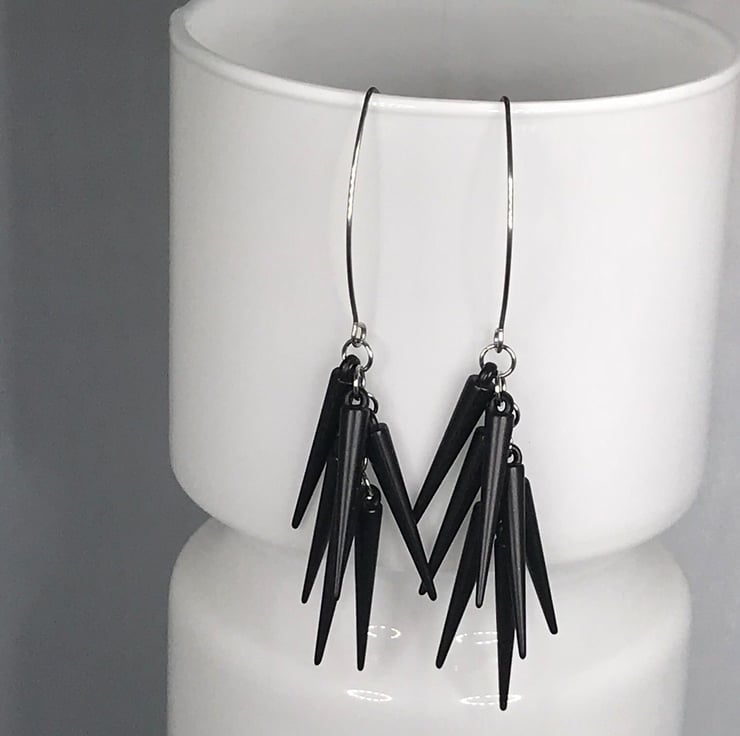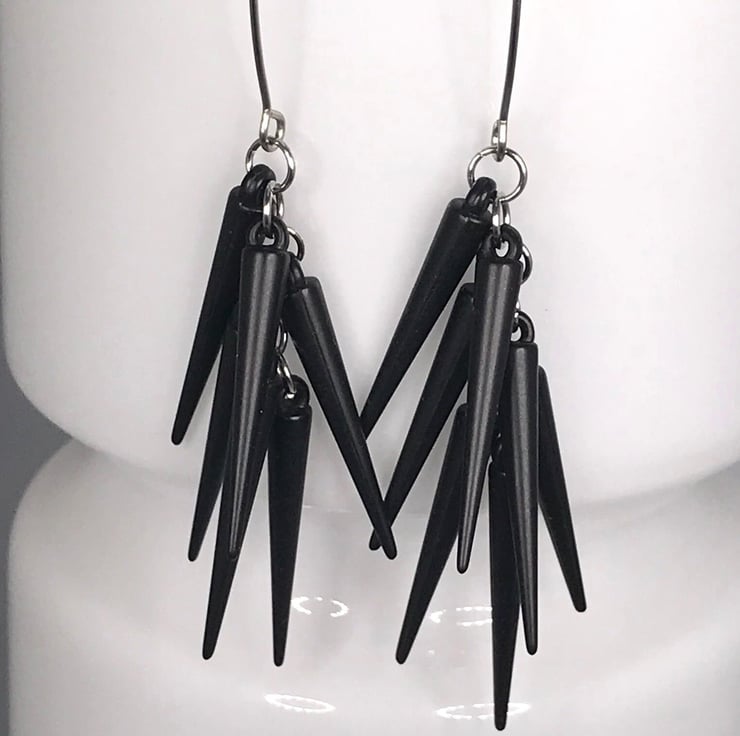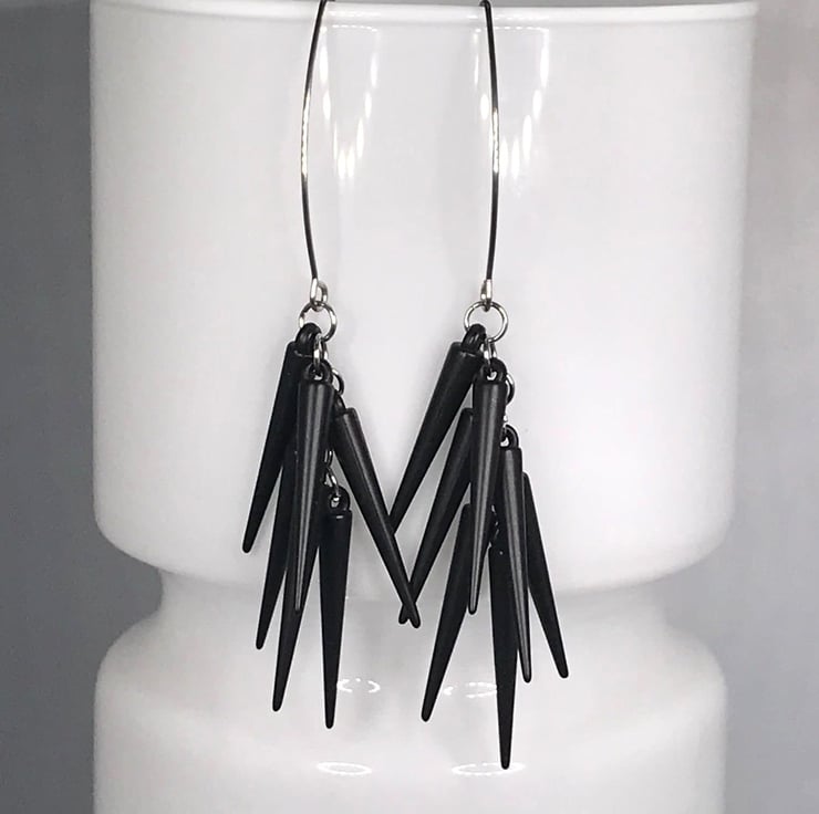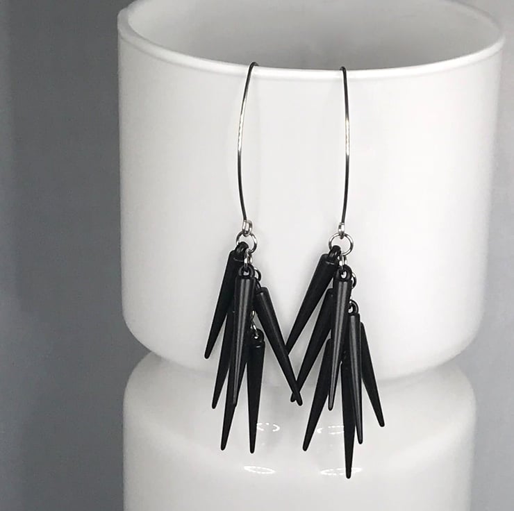 I've used acrylic spikes in black and stacked them in a waterfall of about seven pairing them with gorgeous stainless steel threader ear wires.