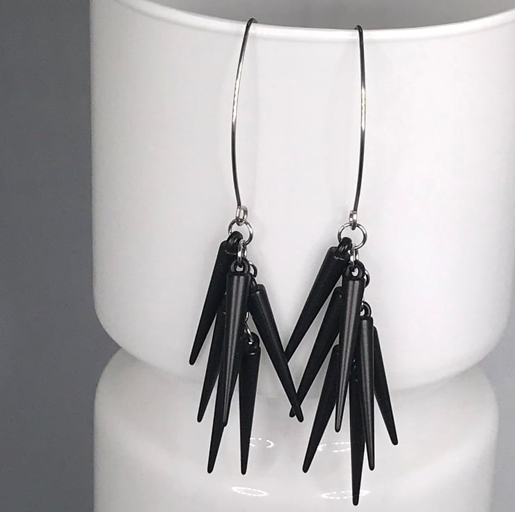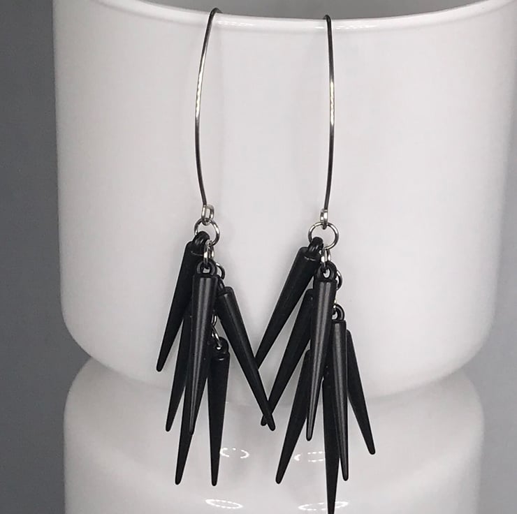 Oh these are so cool I can't take them off. I love them so much. Black coloured spiky threader earrings on stainless steel, mega.