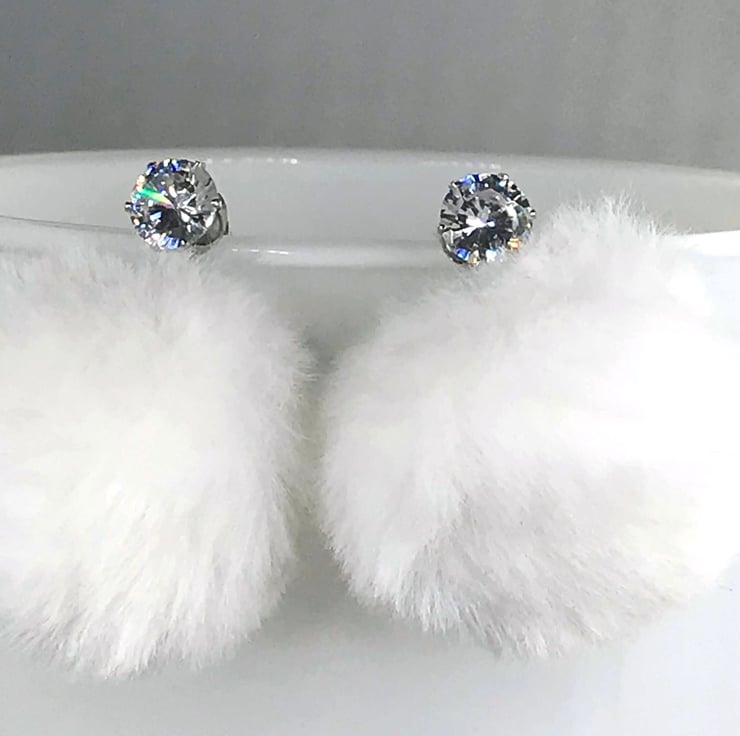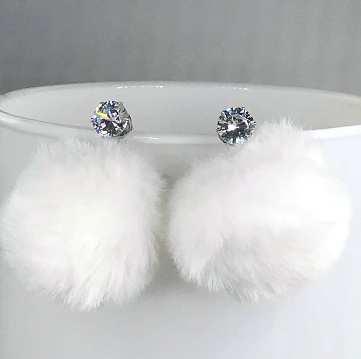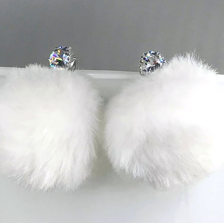 These are so much Christmas fun. And fun any other time of the year too. V Monroe, don't you think?I haven't taken mine off. Faux fur white snowball earrings with crystal studs.