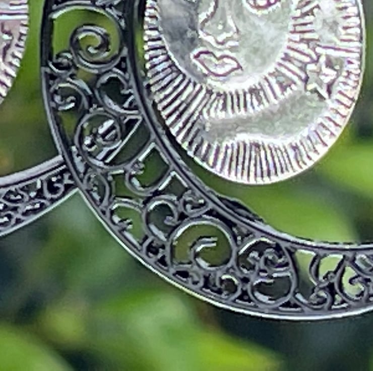 I've used a beautiful moon connector and paired it with the lovely charm in Tibetan silver. I've finished off with hypo allergenic ear wires in lovely silver plate