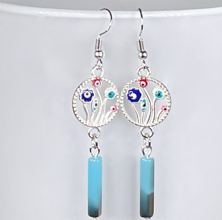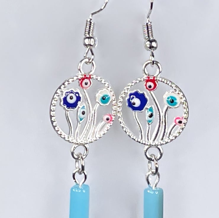 The eye charm measures 2.5 cm and the whole earring is a lovely 6.5 cm including the ear wire.