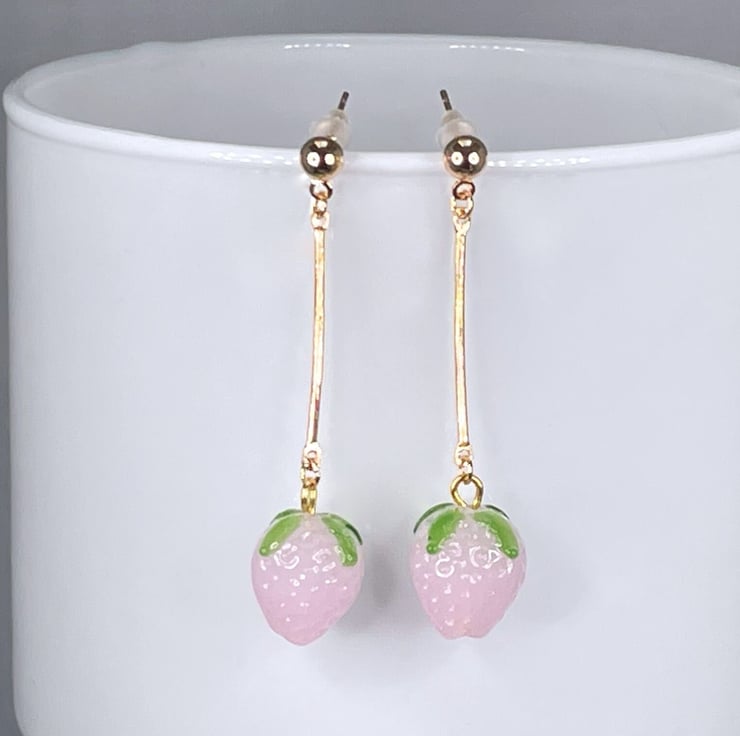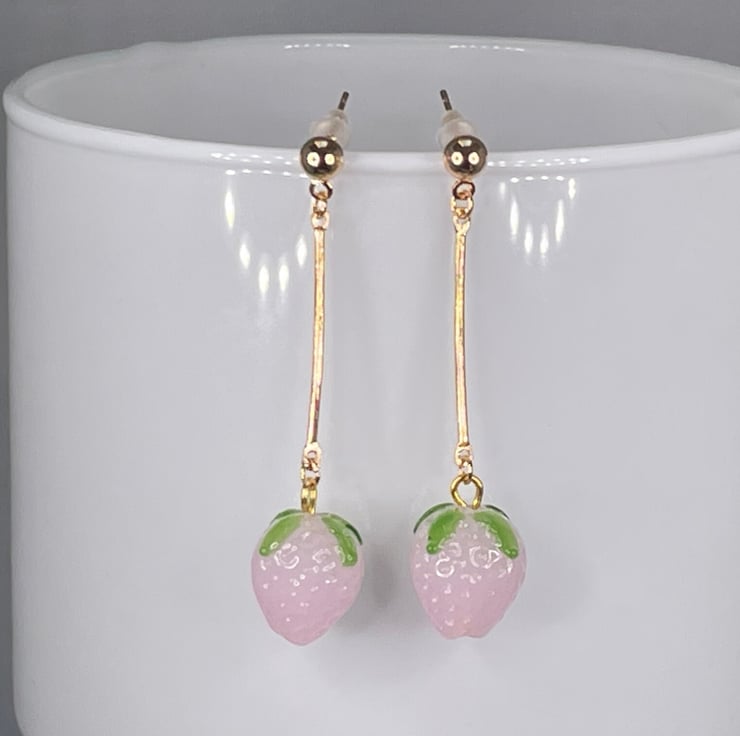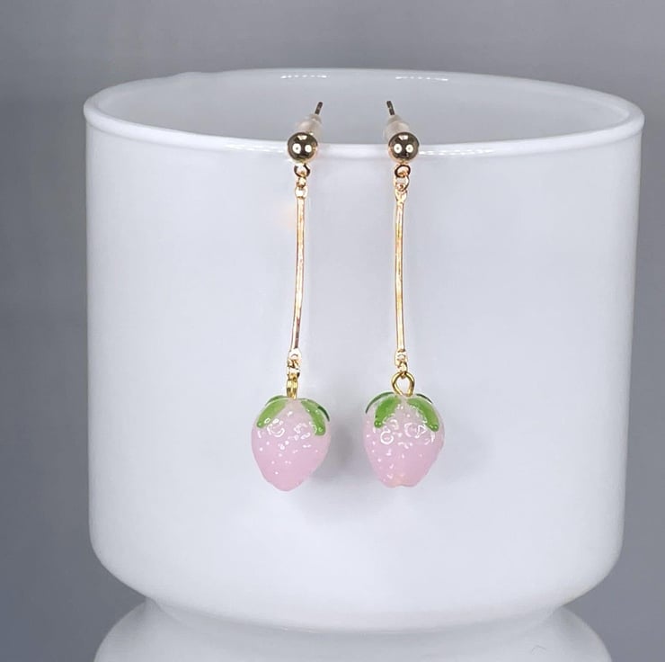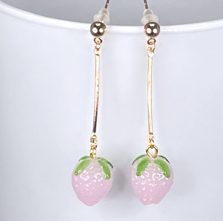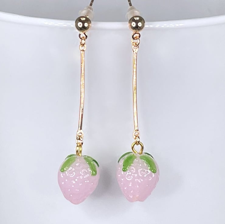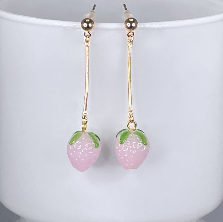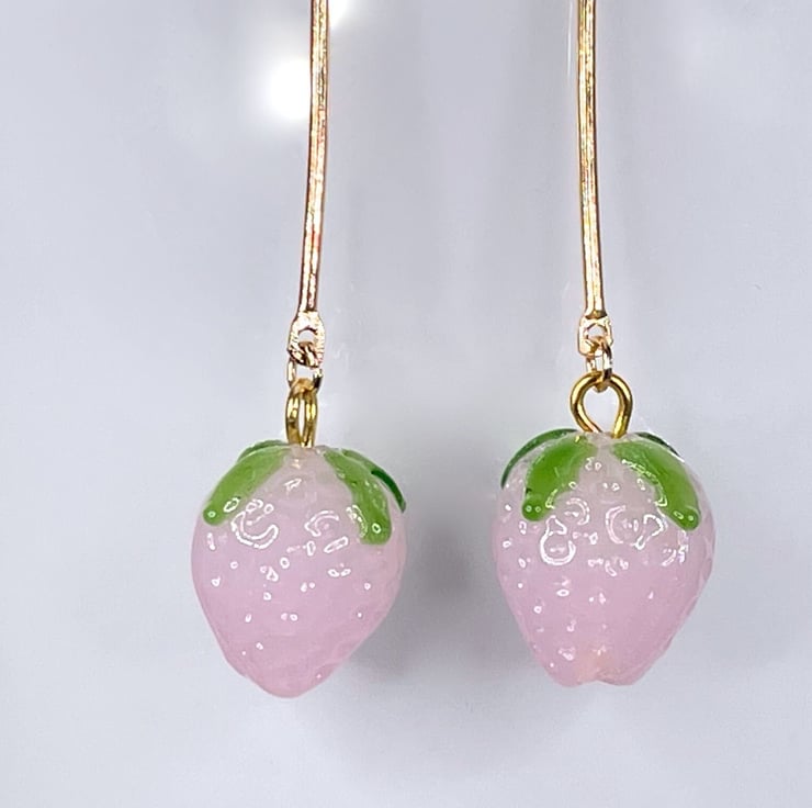 I've used glass strawberry beads and paired them with gold plated brass drop bars in a lovely Korean style and finished off with gold plated brass ball pushback studs. So elegant.