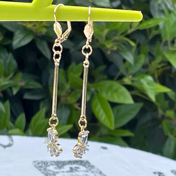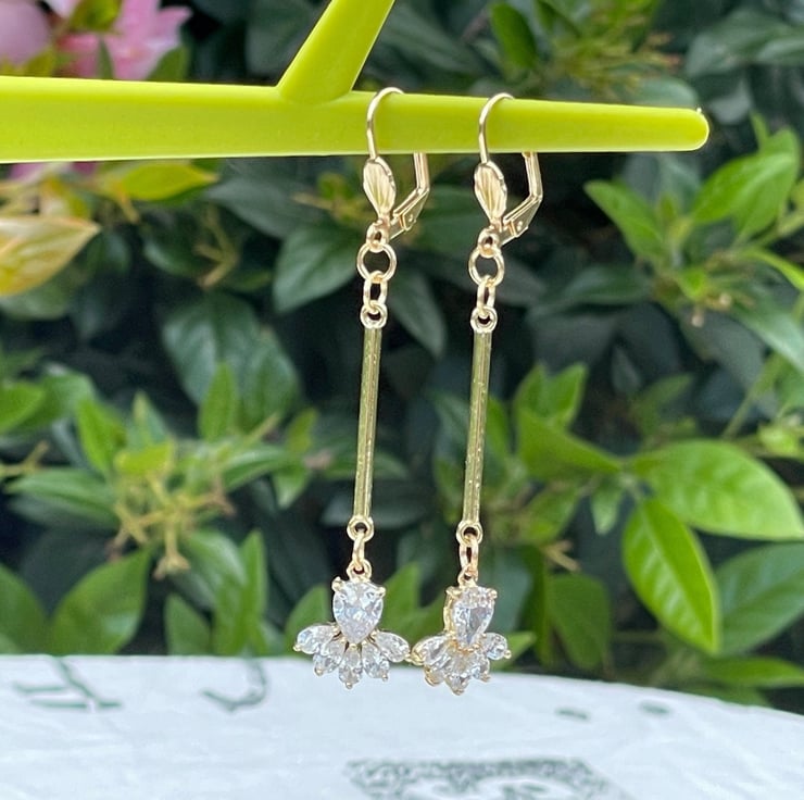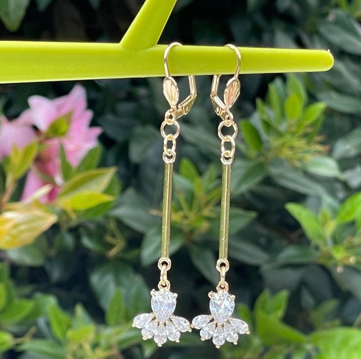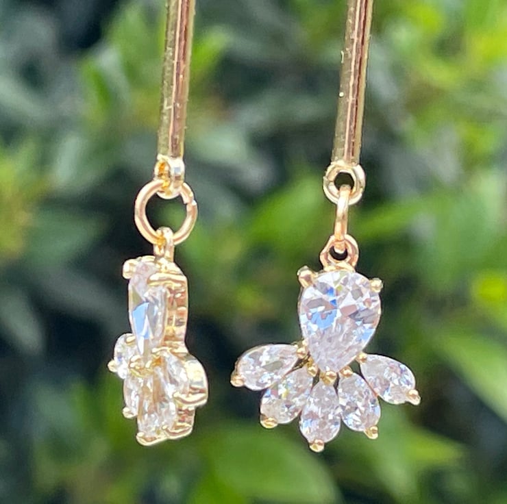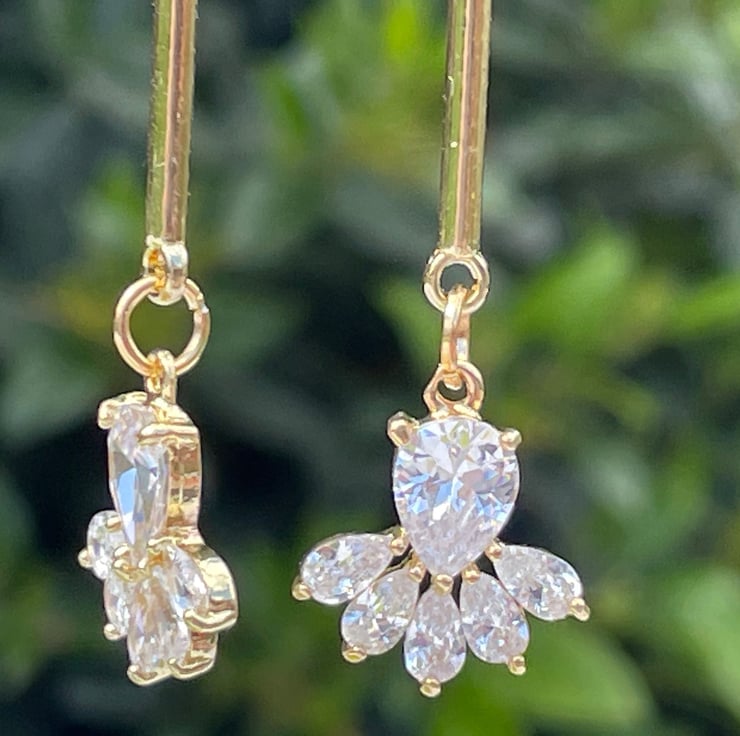 I've used white crystal Marquise fan shapes, they're so pretty, I could die, on gold plated brass and paired them with gold plated drop bar connectors and complimenting gold plated hypo allergenic french ear wires with a matching fan element.