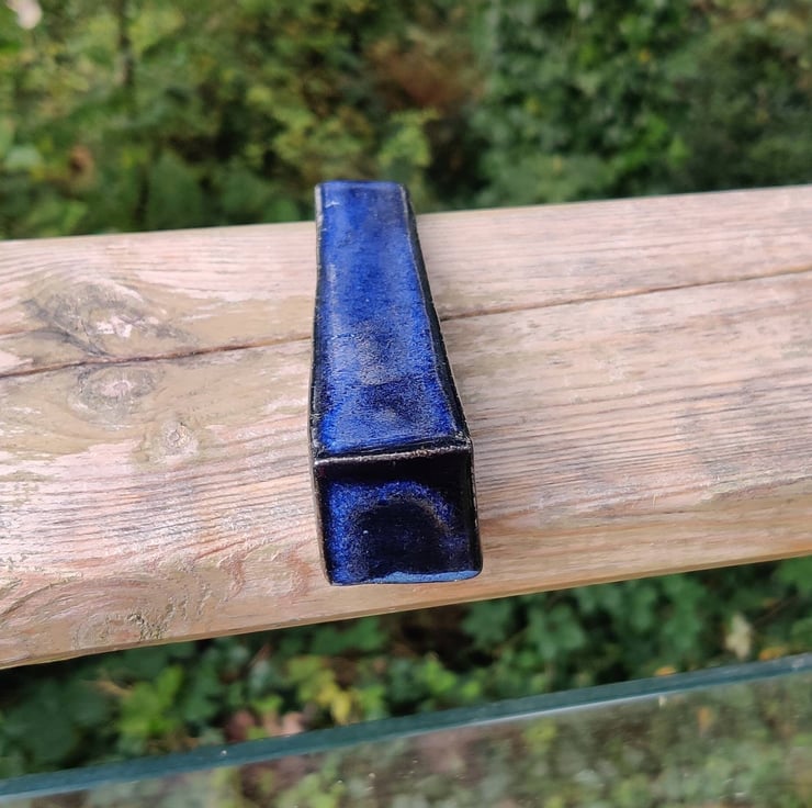 Once dry it is hand painted in several glazes in multiple layers to create this attractive blue finish. It then gets fired to 1180 deg C making it extremely tough.