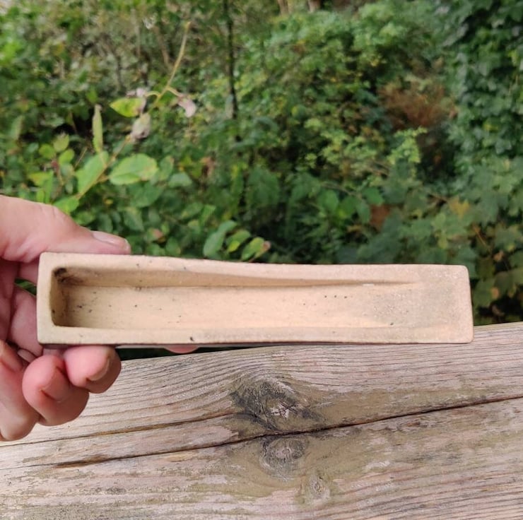 Made by hand. This piece has been carved from a solid piece of clay then hollowed out on the back.