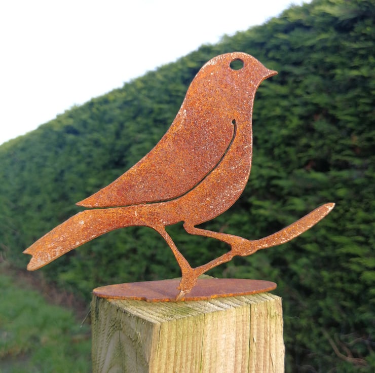 Our Rusted Metal Bird is cut from a 2mm mild steel. Each item is then hand rusted giving the piece its very own unique finish. The rustic finish will maintain its beauty for you to enjoy year after year.
