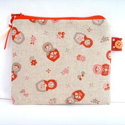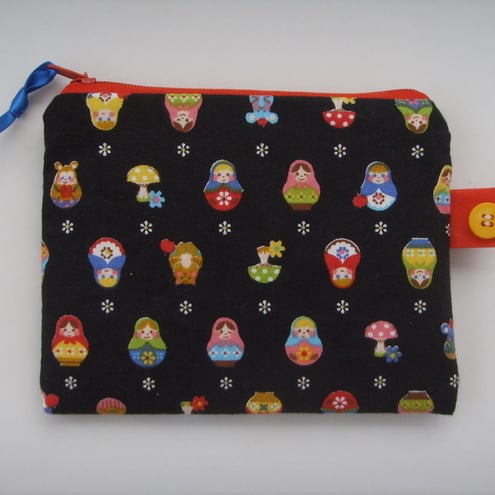 Pretty little Russian doll Japanese printed fabric coin purse, perfect for your coins, notes and cards.