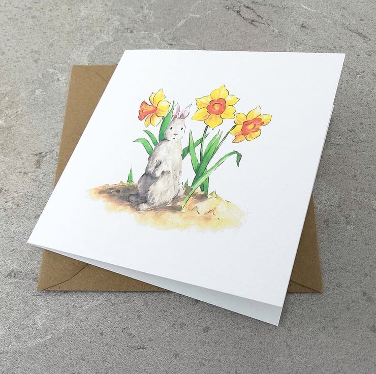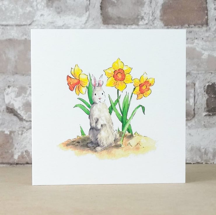 This eco friendly Easter card has been printed using my original artwork on to 100% recycled felted white 270g card and has been left blank inside for your own special message. This eco friendly felted white card has a lovely textured finish. Size 140 x 140 mm