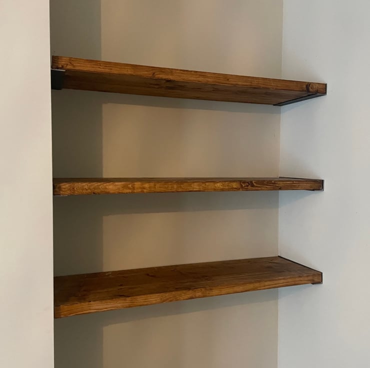For sale are shelves made from scaffold boards. Each shelf is planed, sanded down and finished using Briwax