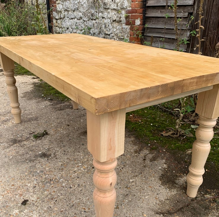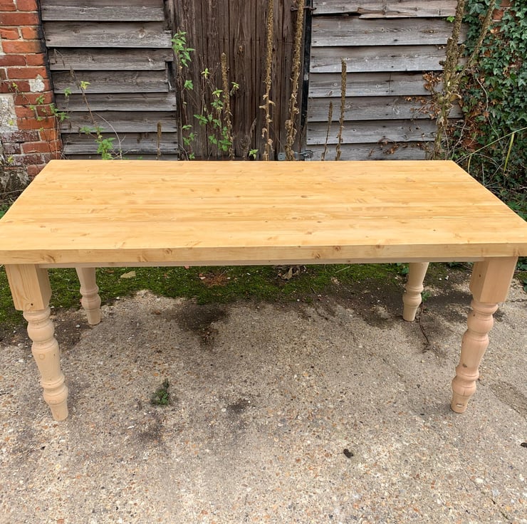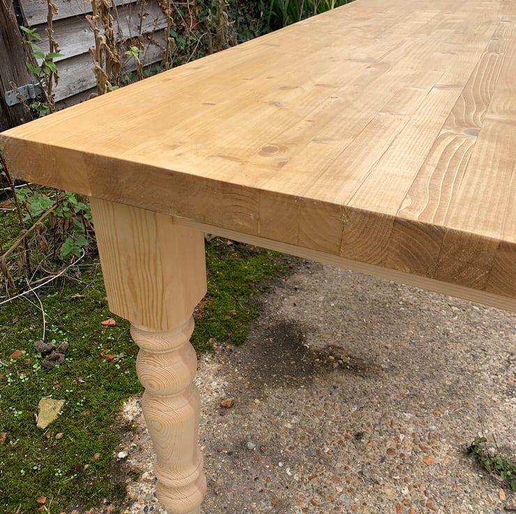 All our table tops are approximately 35mm in thickness. When working with natural materials no two pieces are the same so there could be slight differences like knots & grain etc.
