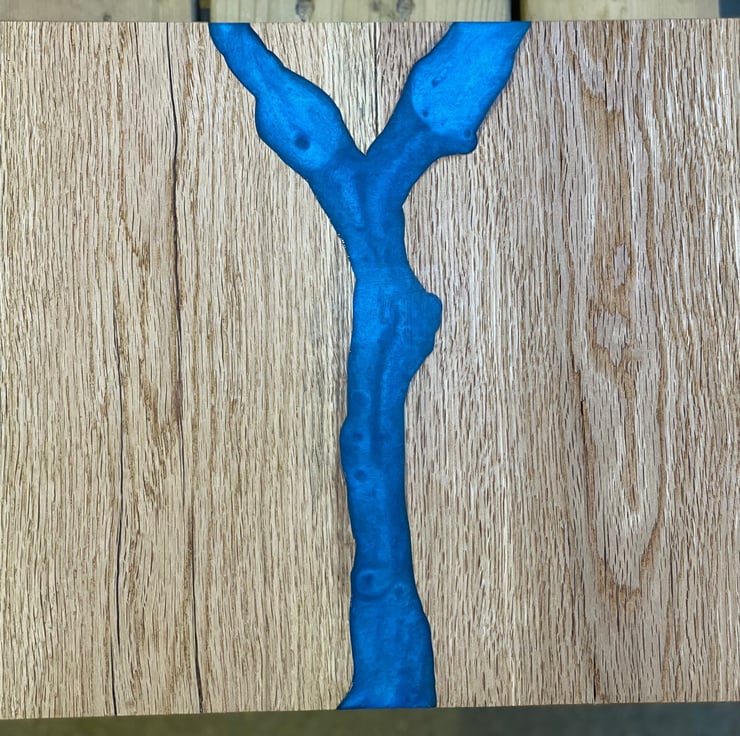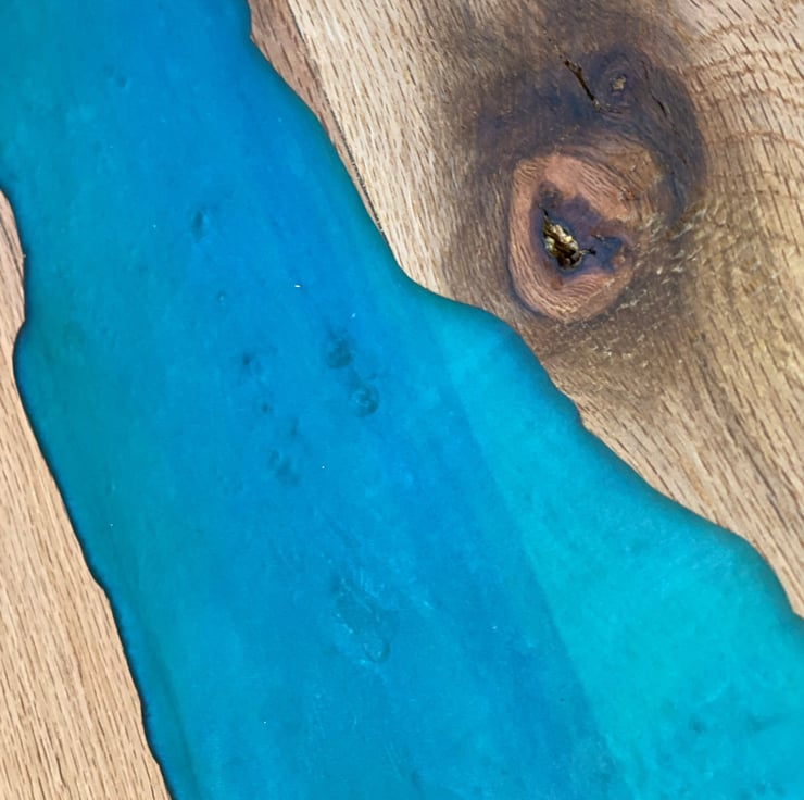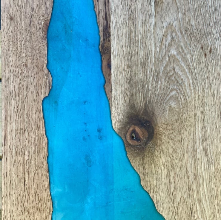 Solid oak chopping board with a coloured resin river effect (many colours available)
