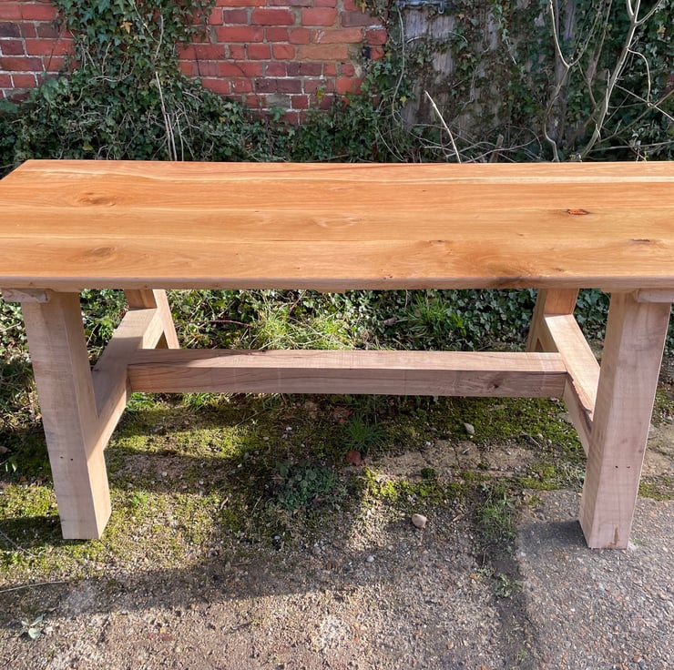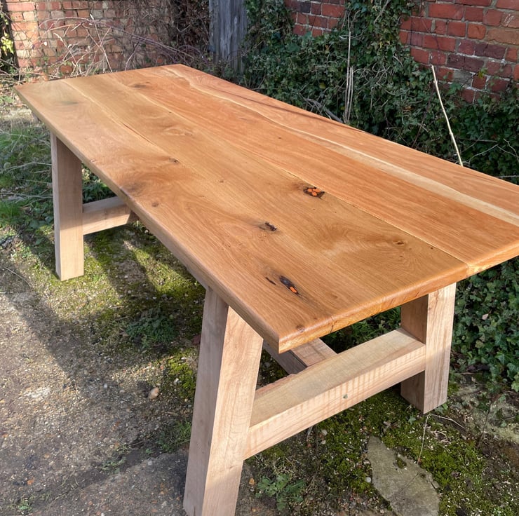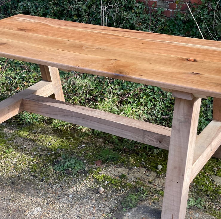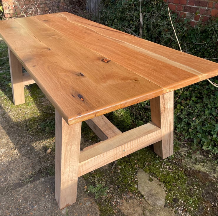 Constructed entirely from solid oak 30mm thick, this charming table has a modern feel. Created entirely from rustic raw oak planed perfectly and finished with DeksOlje, this has resin inlaid (if needed to fill knots & cracks) this would suit a modern, rustic or contemporary home.