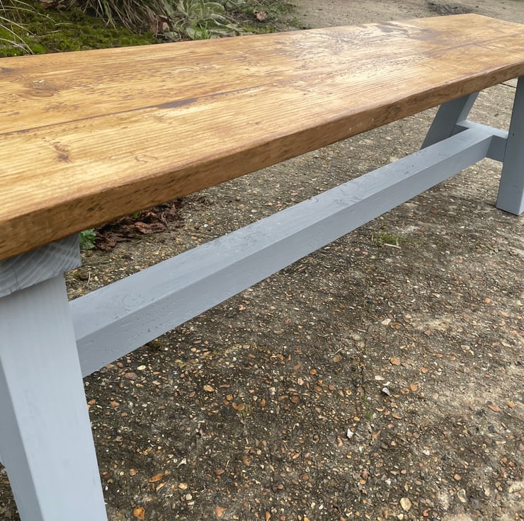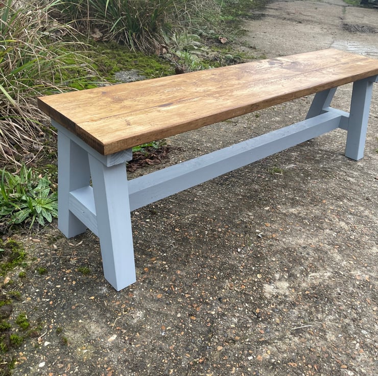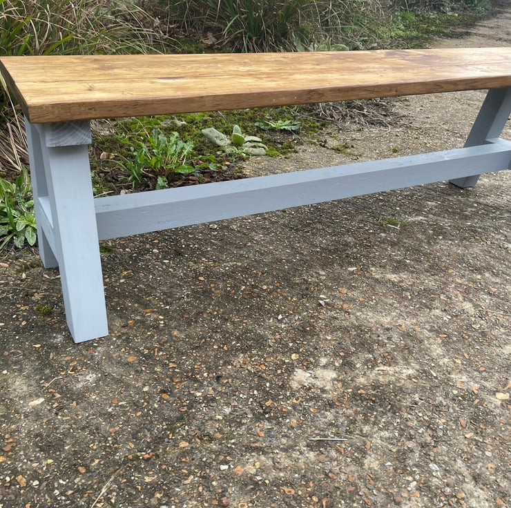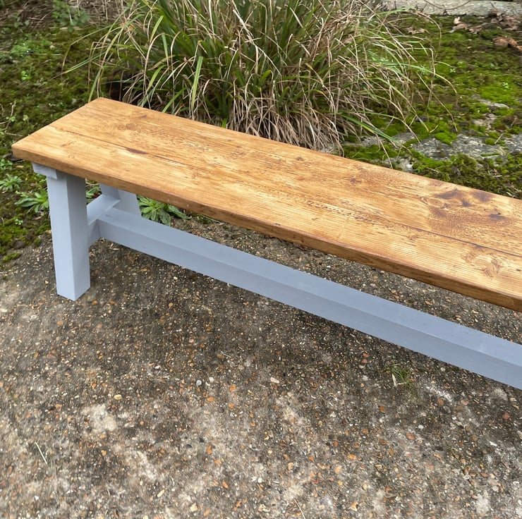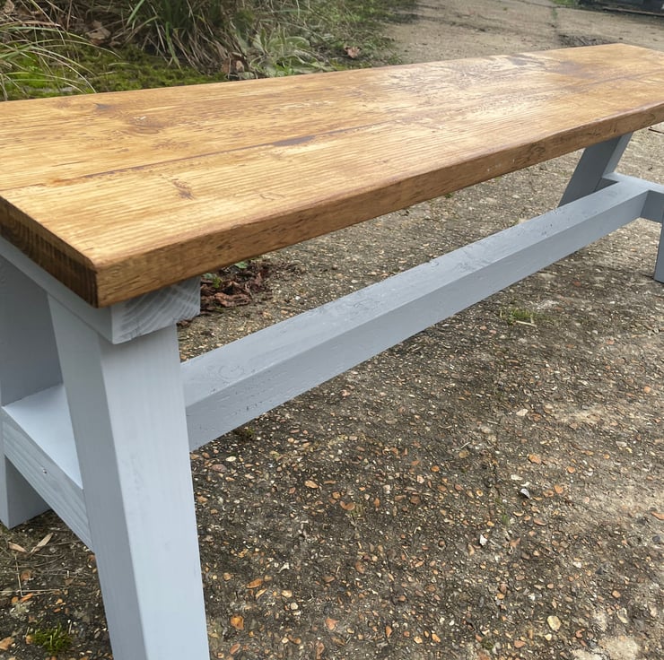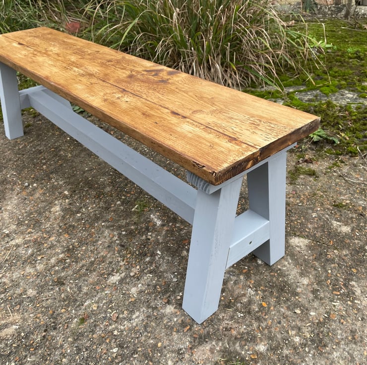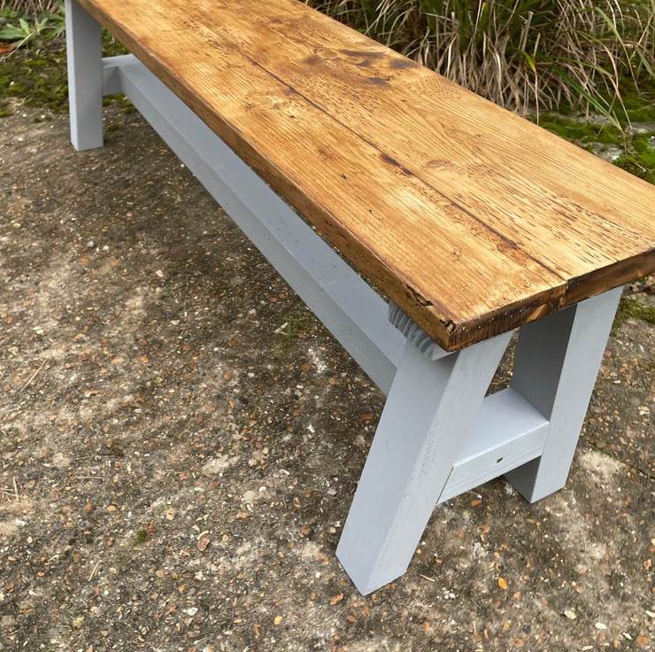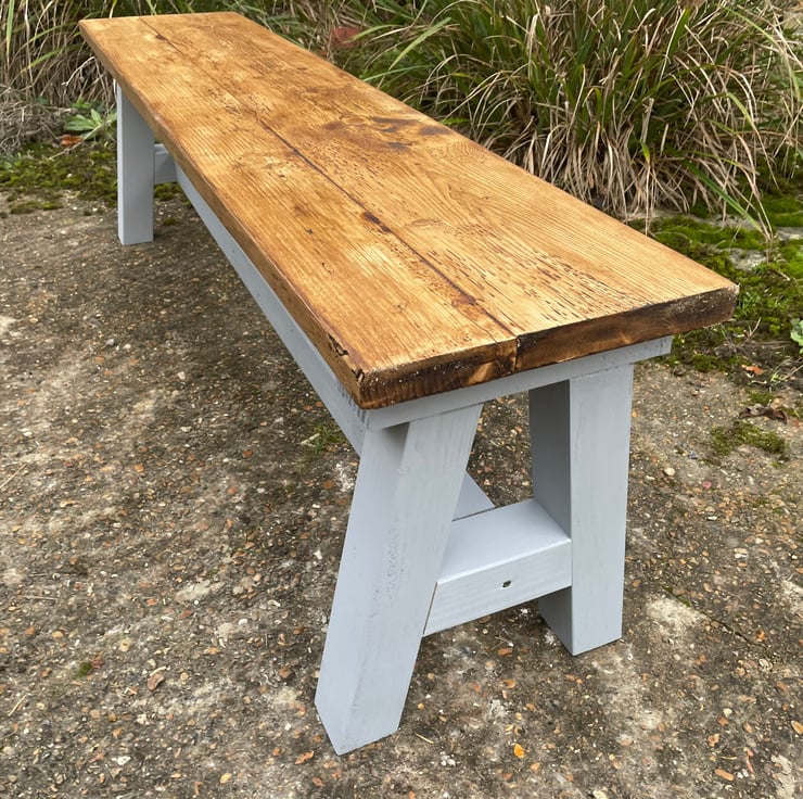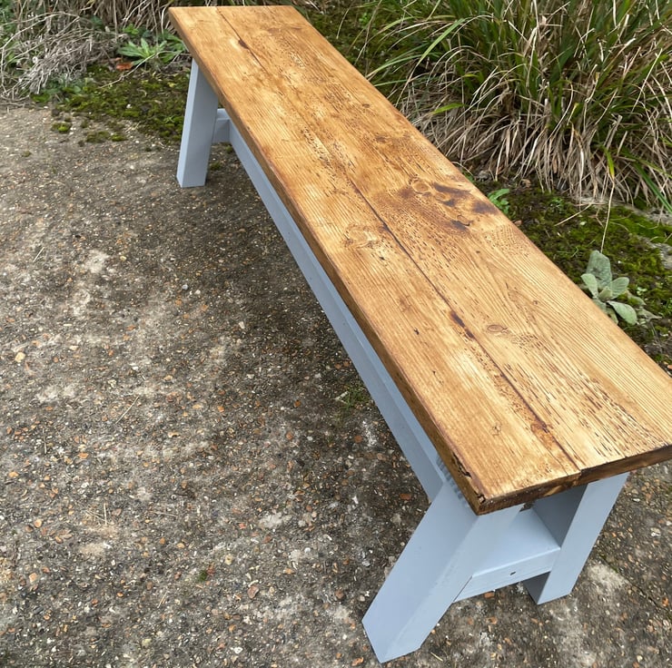 Constructed entirely from reclaimed timber 35mm (approx) thick, this charming bench has been designed to sit in a range of settings. Crafted from reclaimed pine machined perfectly by our craftsman, finished in a Briwax colour of your choice, this could fit perfectly within the modern, rustic or contemporary home.