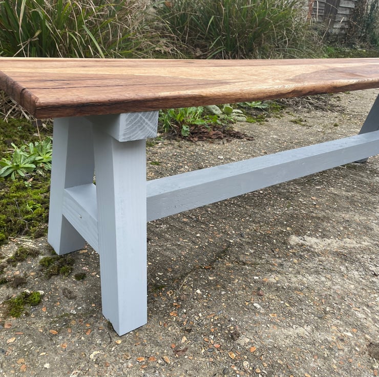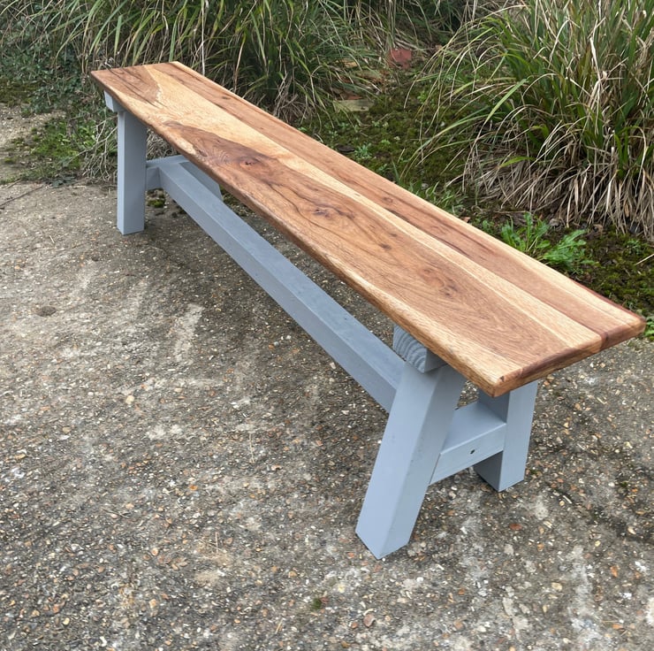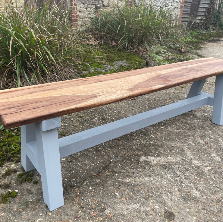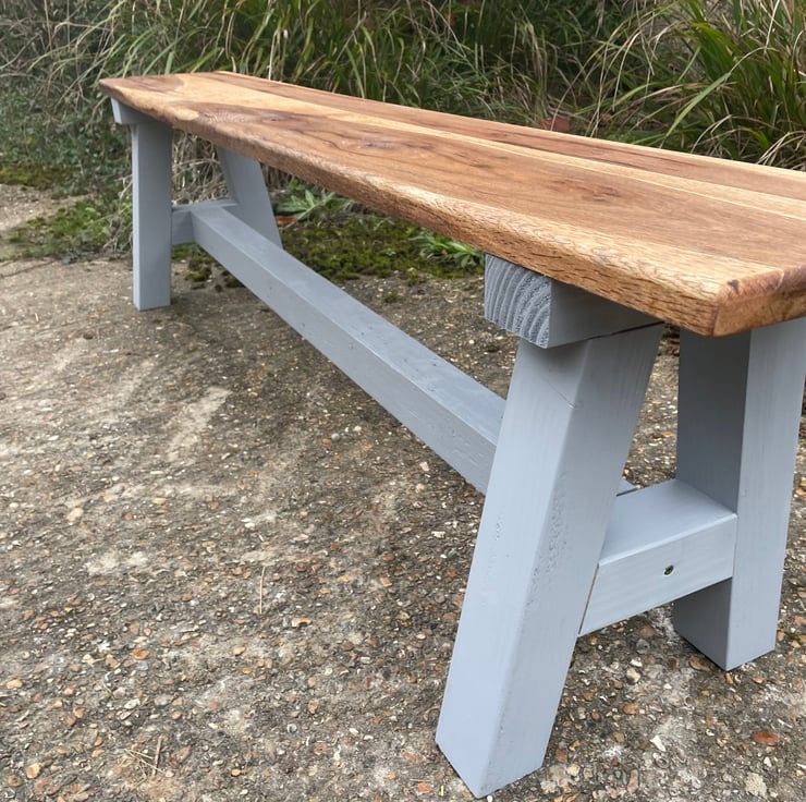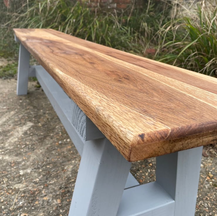 Constructed entirely from solid oak 30mm (approximately) thick, this charming bench has been designed to sit in a range of settings. Having been created from rustic raw oak material ,machined perfectly by our craftsman, finished with wax or Osmo Oil & resin inlay, this would fit perfectly within the modern, rustic or contemporary home.