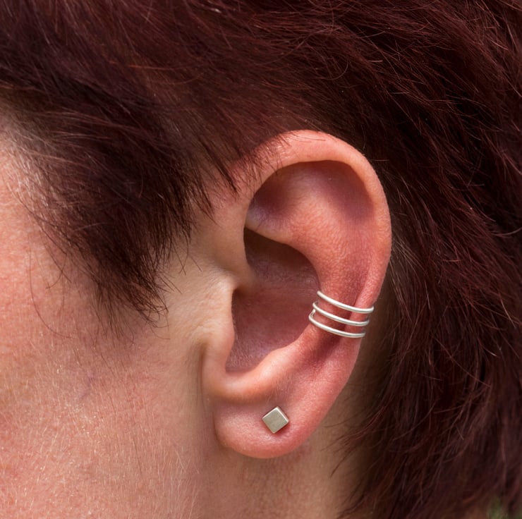 Triple hooped ear cuff in Sterling Silver. Brush matt texture or mirror finished