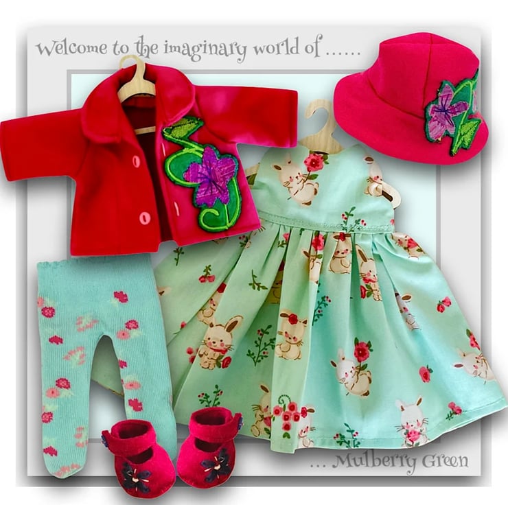Mulberry Green is all about a time, now gone, but not so very long ago, when children had a great deal of freedom to explore their surroundings and use their imagination in play. A time when the world moved at a slower pace and things were made to last. To celebrate this heritage, wherever possible, I use traditional crafts and materials to create my dolls and outfits.