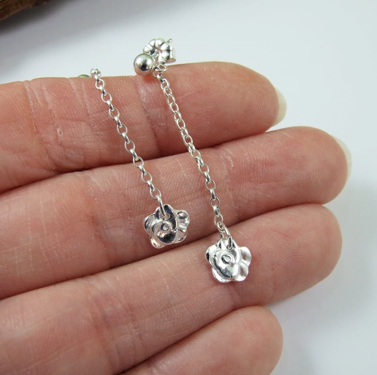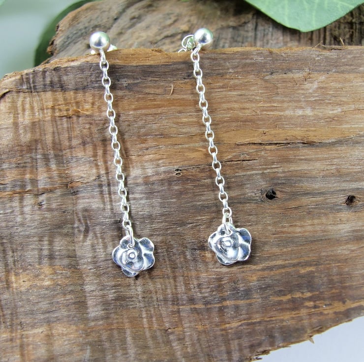 I have made the earrings using .925 silver studs, to which I have added some fine silver chain and my own handmade flower charm.