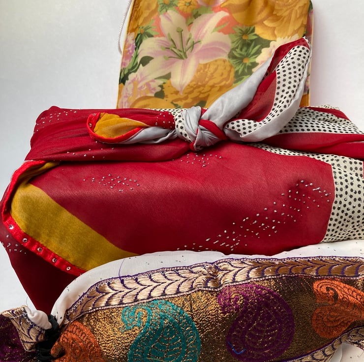 These beautiful gift wraps are perfect for a special occasion. The lovely fabrics, sourced from pre-loved saris, will make your gift look special. They can be used over and over again, saving you money and reducing the amount of wrapping sent to landfill.