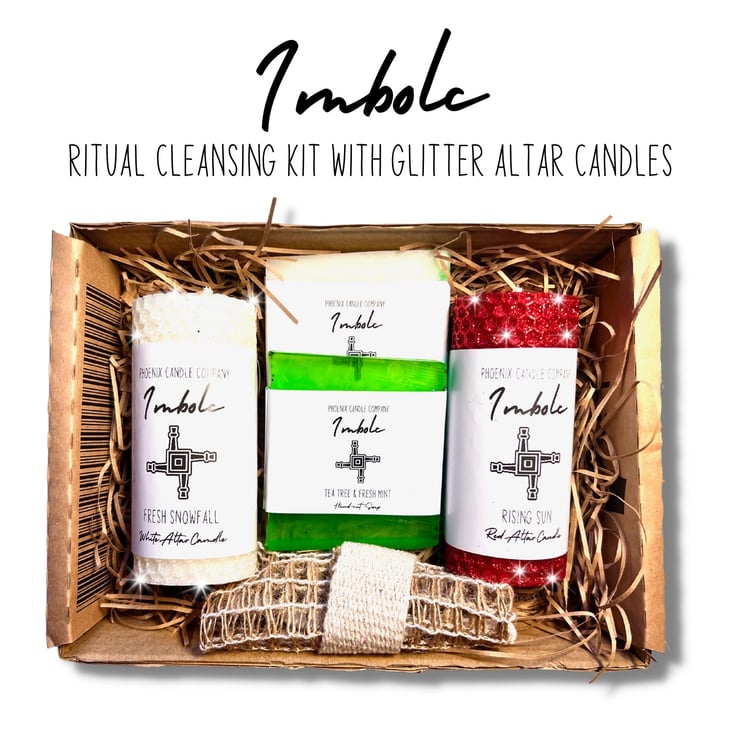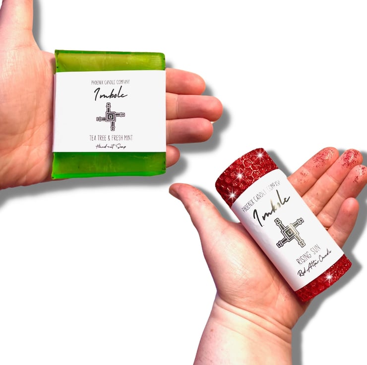 Celebrate Imbolc in traditional Pagan style with a lovely box of goodies for you and your altar. Featuring two, beeswax altar candles in the colours of Imbolc - White and Red, both finished in beautiful shimmering glitter dust. Your altar will look FABULOUS. For you, as a treat, we’re putting in two seasonal handmade soaps. Wow your guests with a bar of hand-cut organic soap in the bathroom. And the best bit is the A4 Imbolc Guide packed full of information such as Imbolc activities, food and beverage ideas, stones, flowers and herbs and loads more. Our Wheel of the Year is also in there and can be used all year round as a gorgeous piece of artwork whilst displaying the witch’s calendar of all Sabbats and Esbats.