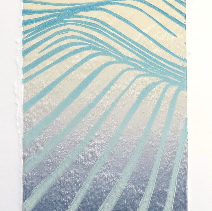 A modern print showing the linear structure of a wave observed at the water's edge. This is an open and varied edition of prints that are printed in different colourways as can be seen in group photographs and is part of an ongoing series.