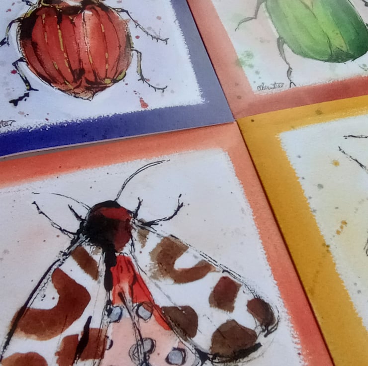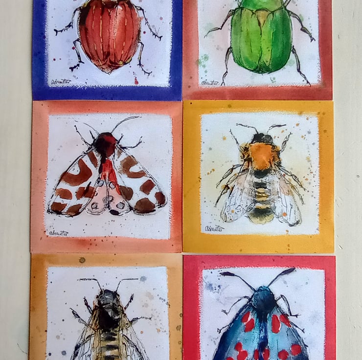Each of these cards has a little fact about the creature on the back. This project began when I found a rose chafer beetle and having drawn it, I felt I wanted to draw more of these beautiful little creatures so I just kept going!