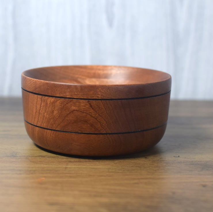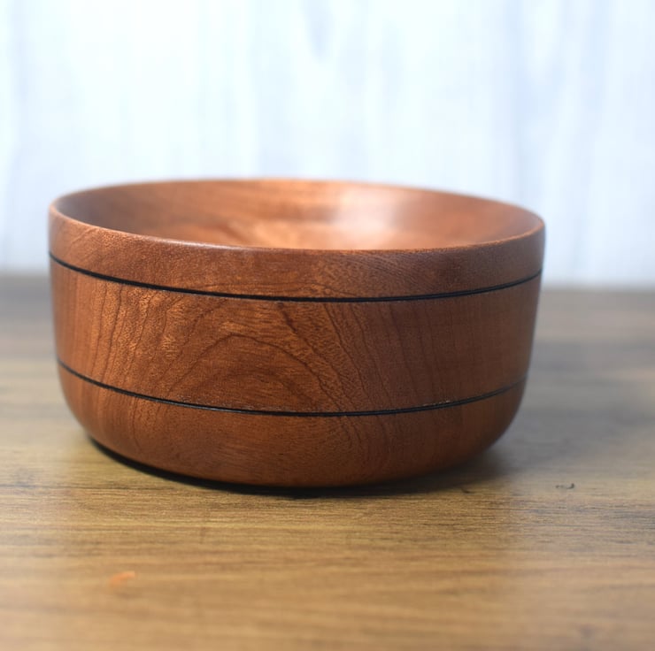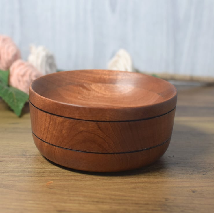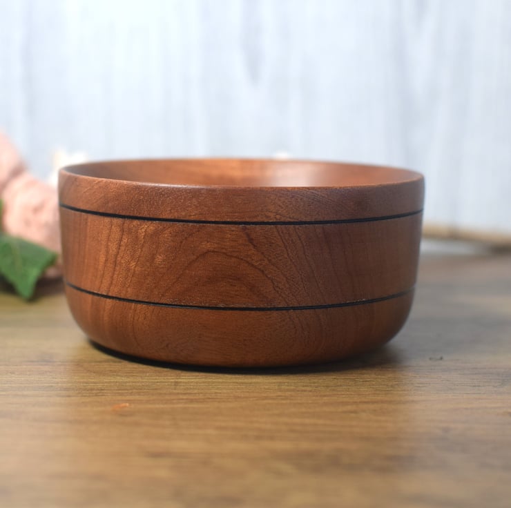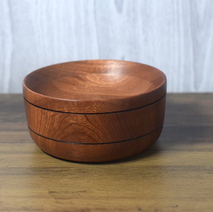 Sapele is a West African hardwood very similar to Mahogany. This dish has been made using laminated sections of Sapele to give alternating and interesting grain patterns.