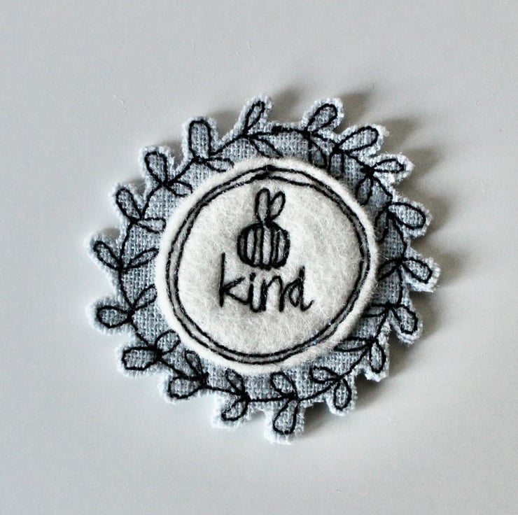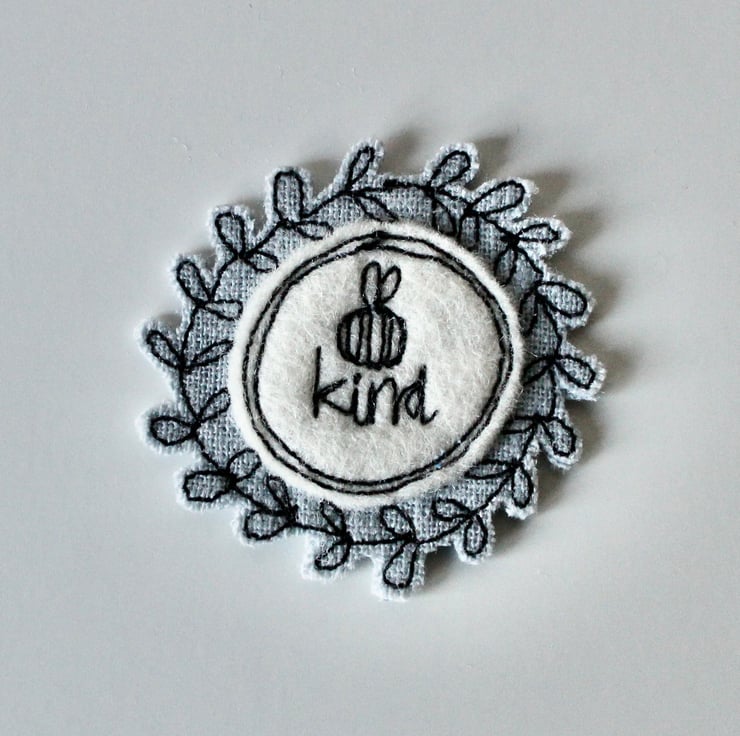 Each magnet is created using multiple layers of cloth, sewn using freehand machine embroidery and then cut out by hand. The magnet on the back is attached with hot glue.