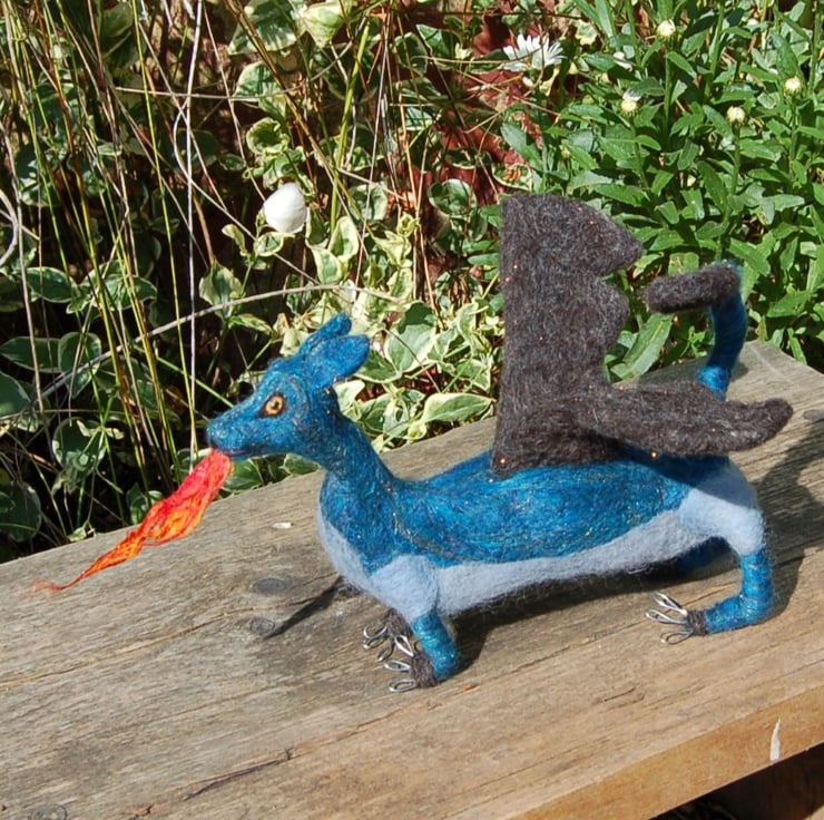 A unique fibre art dragon sculpture. I've called her Nythemryl.