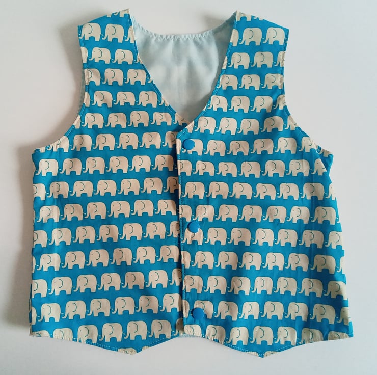 Waistcoat for boys with an Elephant design in a Cotton Poplin outer.