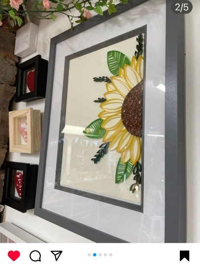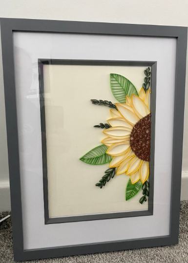 This Quilled Sunflower Picture Box Frame Wall Art has been made by hand using the 'ON EDGE' technique using strips of Quilling paper