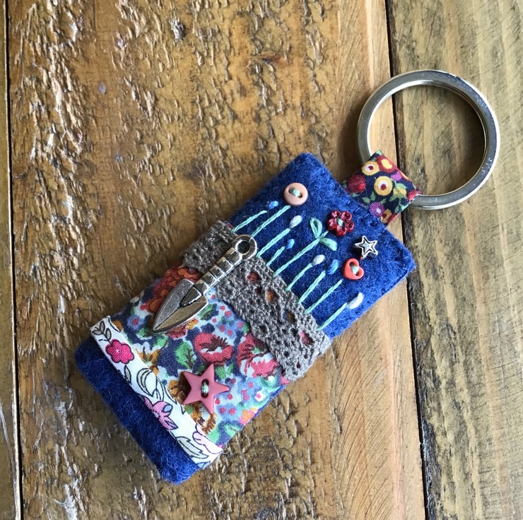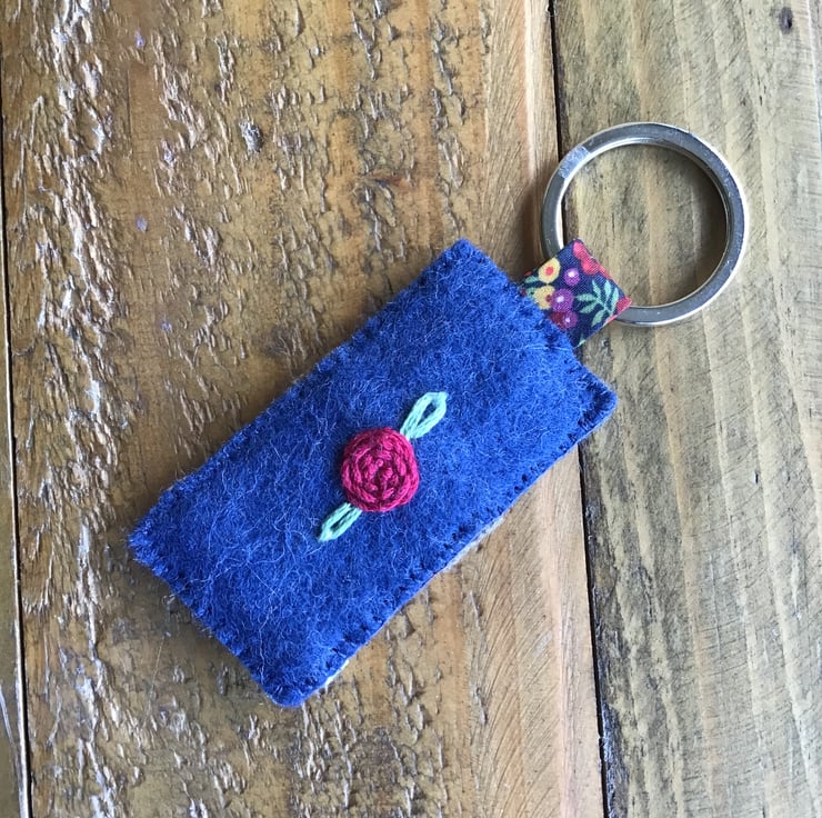 All hand stitched/embroidered.. Measures 6x3cm - not including loop and ring.