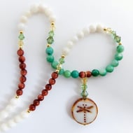 Lovely, natural hues of cream, light brown and golden brown with flashes of Mother-of-Pearl from the shell beads.