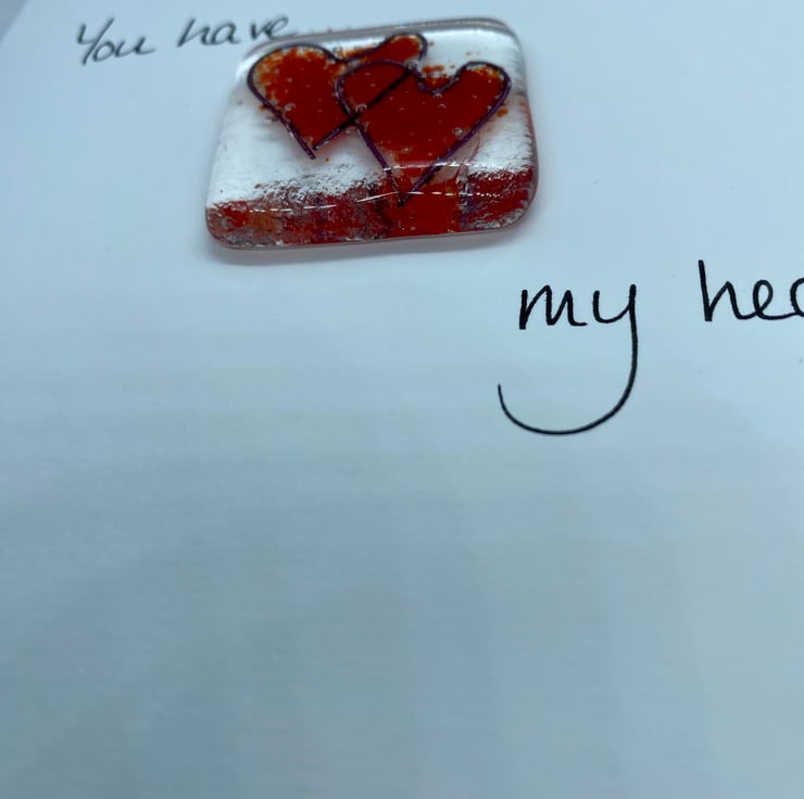 Each is unique - the shape of the wire heart, the red filling, is different every time so your keepsake card really is special to you