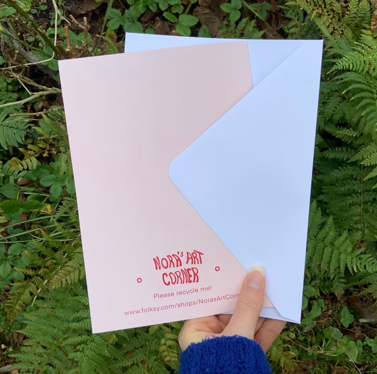 This card is a5 size (15 by 21cm) and comes with a white envelope.