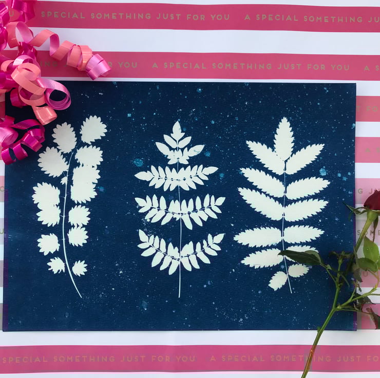 Using beautiful botanicals and Hampshire sunshine, these original cyanotype photograms are perfect as gifts for Birthdays, Anniversaries, your besty, family, or colleagues.