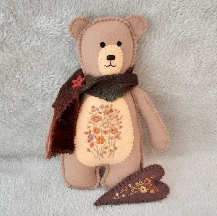 I have been working on a new design for 2023, a hand embroidered keepsake gift, a simple felt teddy bear and heart.