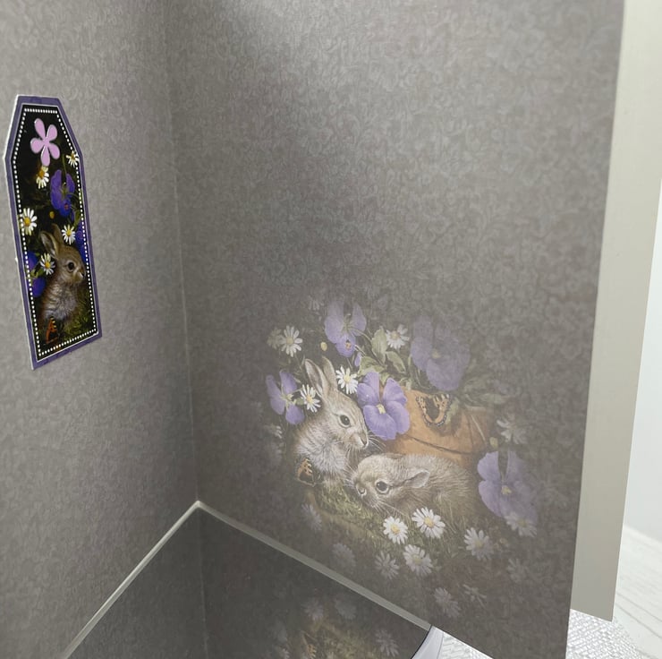 A stunning card depicting the Midnight Garden. Mirri card with added embellishments to enhance the design. Sentiment reads ‘Happy Birthday’ Patterned insert sheet has been left blank for your own message.