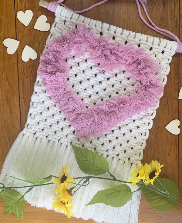 A beautiful and elegant piece of handmade macrame that will grace any wall in any room. As this is knotted with soft 5mm and 3mm single twist natural, cotton cords, it hangs beautifully and is soft to the touch. Maybe you have that special person in your life who has your heart? Maybe a child or grandchild deserves a macrame heart to bring joy to their room and a message of love?