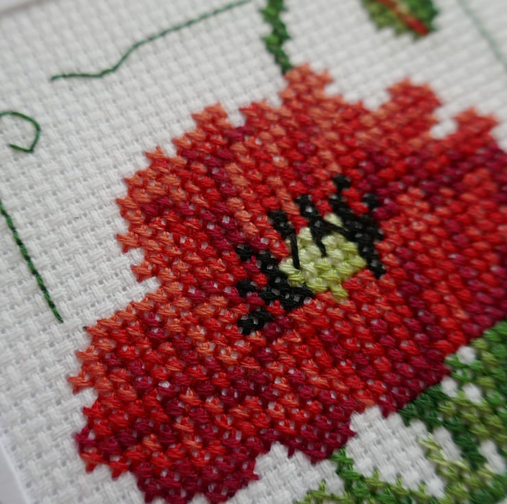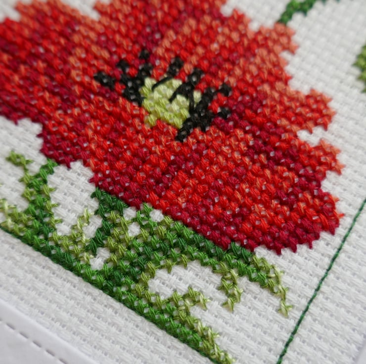 I enjoy stitching floral patterns and have recently discovered these beautiful Carolyn's Garden designs. Poppies are one of my favourite flowers and are also my birth flower.