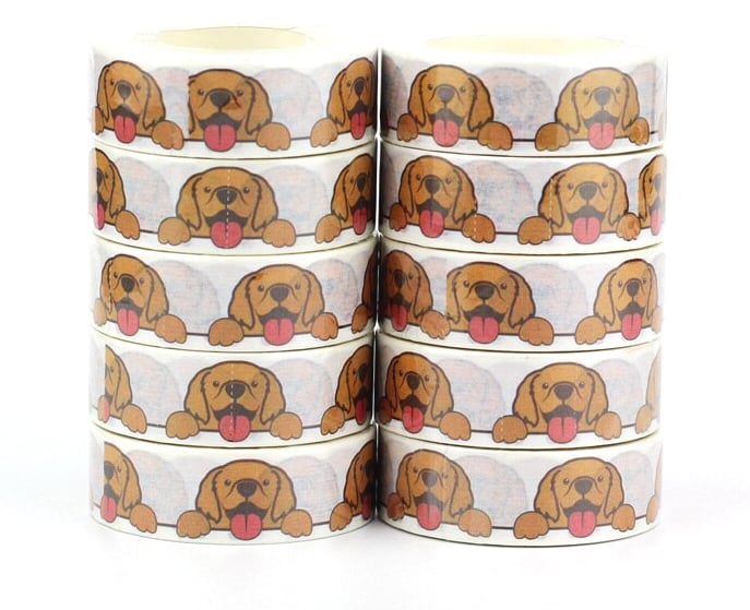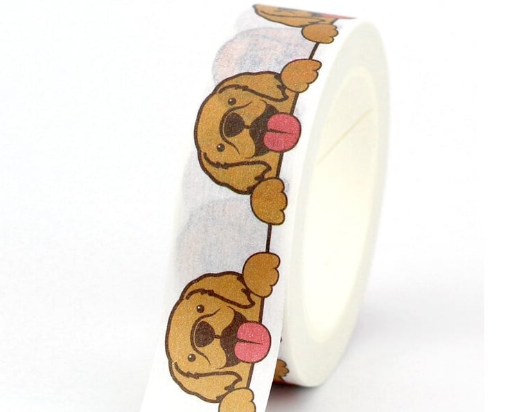 Super cute character style head of a Golden Retriever dog washi patterned tape. Great for all types of craft projects.