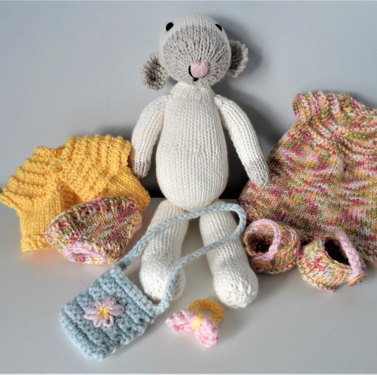 An adorable little lamb with her very own outfit ready to be played with. Includes a cute dress, cardigan, knickers/panties, shoes, ear band & shoulder bag; just the perfect size for cuddling.