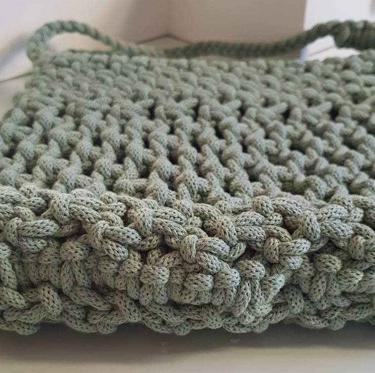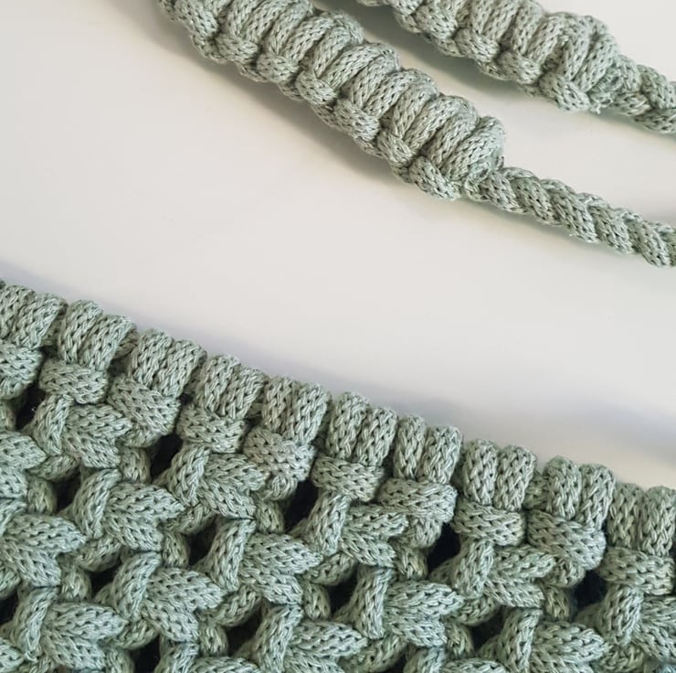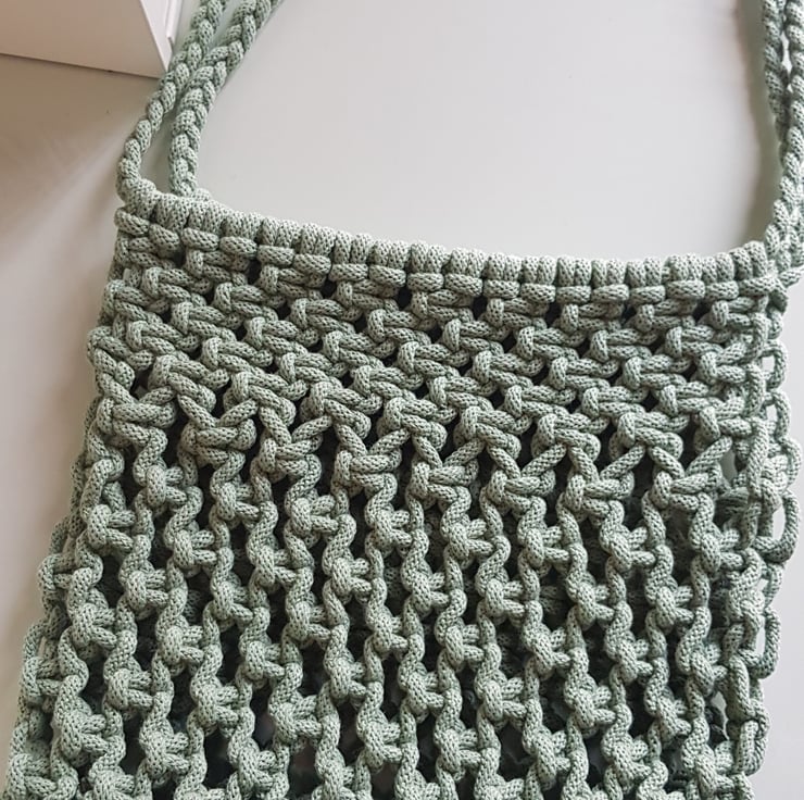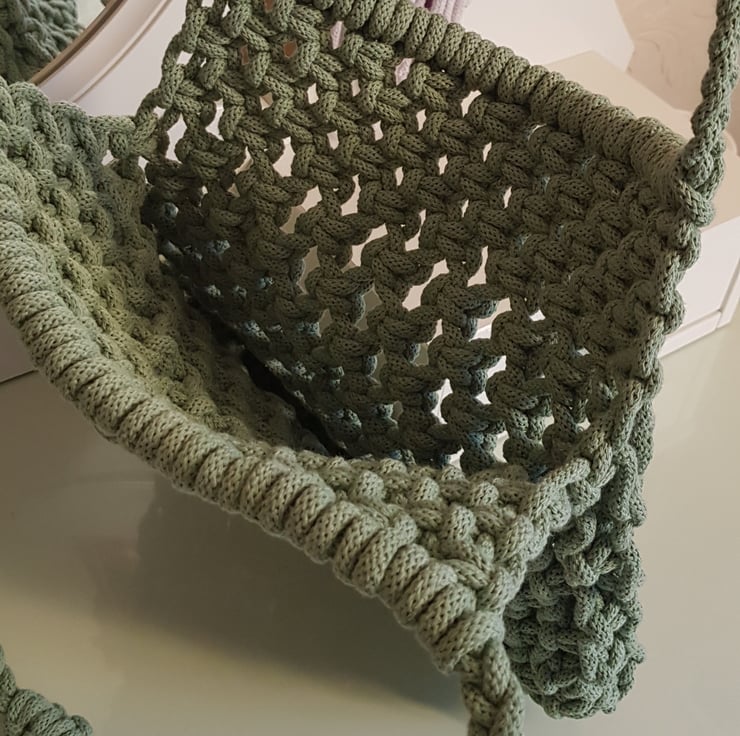 Macrame shoulder bag in beautiful sage green. I used braided cord which makes it really strong and durable . Lots of room inside. It measures 27cm height (60cm including handles) and 28cm wide. The handles are braided with added shoulder detail which also acts like a padding making the bag comfortable on the shoulder.