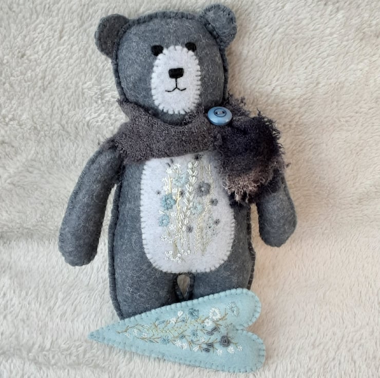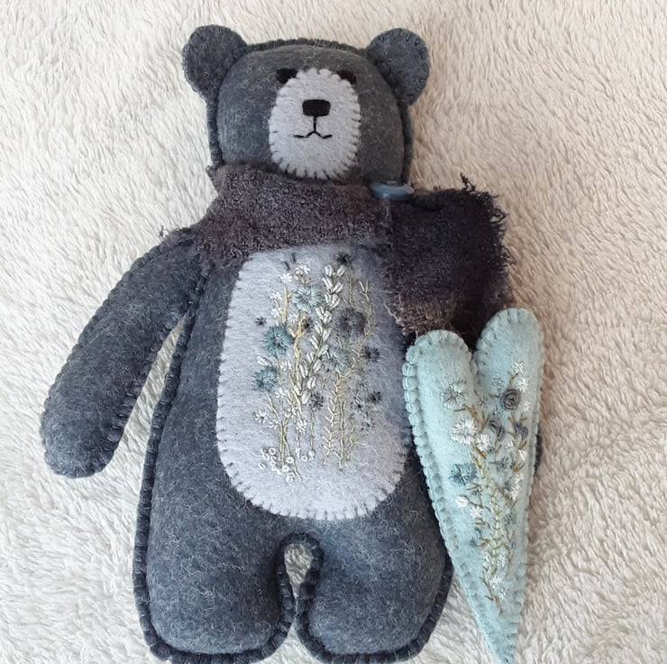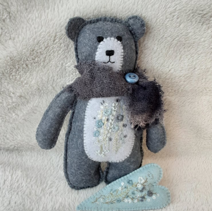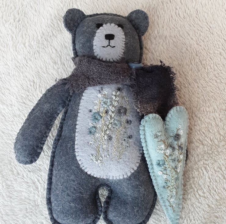 I have been working on a new design for 2023, a hand embroidered keepsake gift, a simple felt teddy bear and heart.