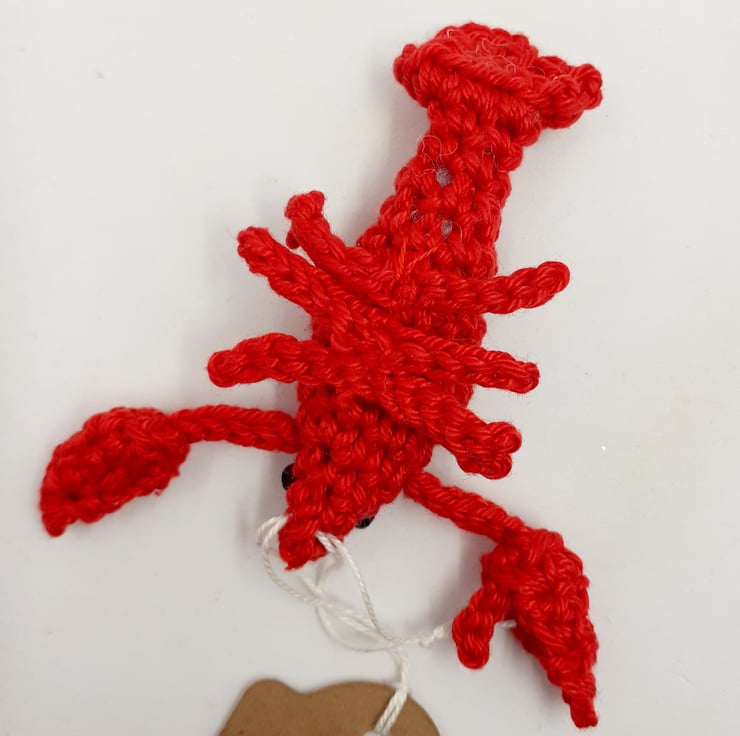 The lobster measures approximately 8cm long and comes wrapped in tissue in a labelled PIP ( Postage in Proportion) box, all ready to be given or posted on.