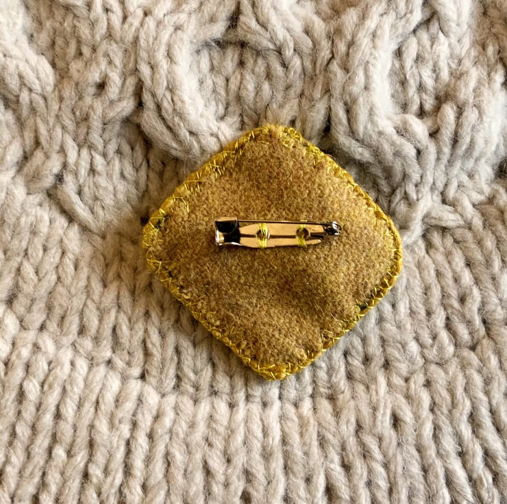 The back is pure wool in mustard colour with a silver metal brooch pin.