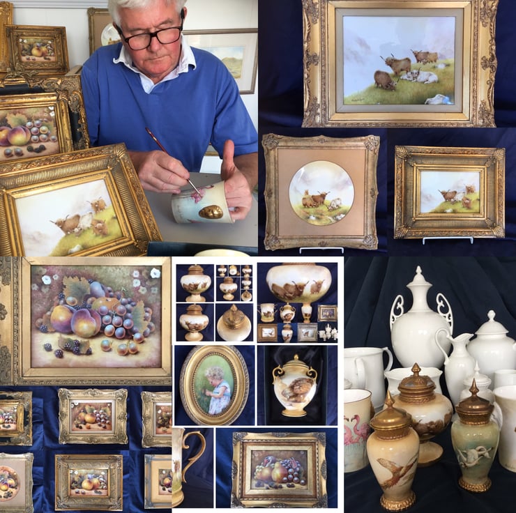 At the Royal Worcester factory only two fires were ever allowed, to keep costs down . I was mentored there by the legendary fruit painter Jack Freeman. This stunning bone china planter is presented in a blue silk lined display box. Certificate of authenticity and artist’s biography.